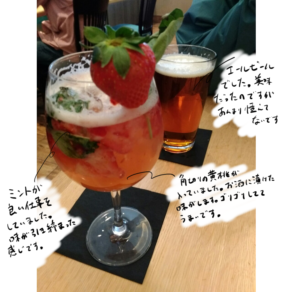 イチゴと黄桃のサングリア(サングリアじゃなかったかも。しゅわしゅわしてました。)